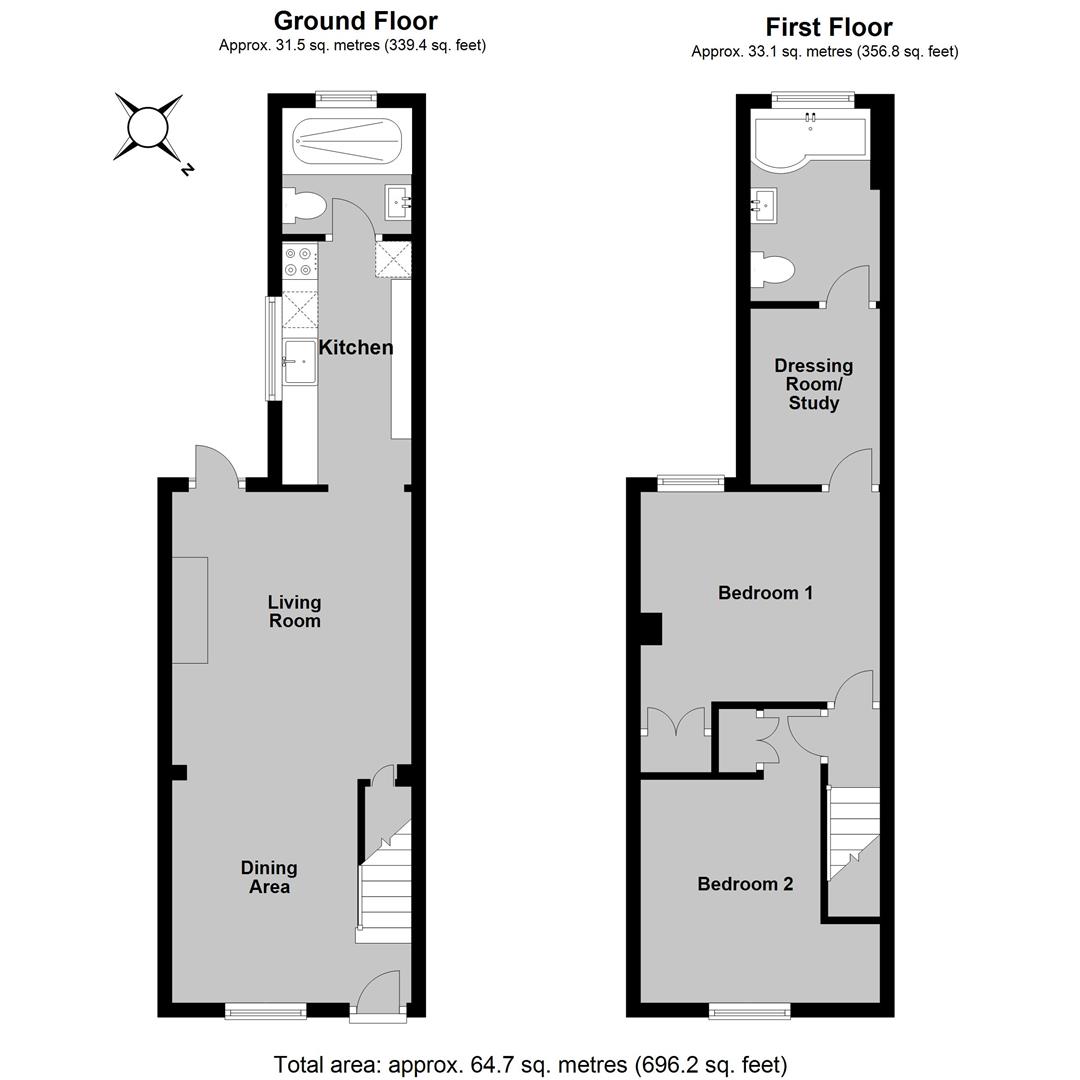 The accommodation is arranged to provide a bright and spacious living room / dining area with herringbone flooring and opening to a smartly fitted kitchen, two double bedrooms, a dressing room / study and two stylish bathrooms, including an en-suite bathroom and a ground floor shower room.