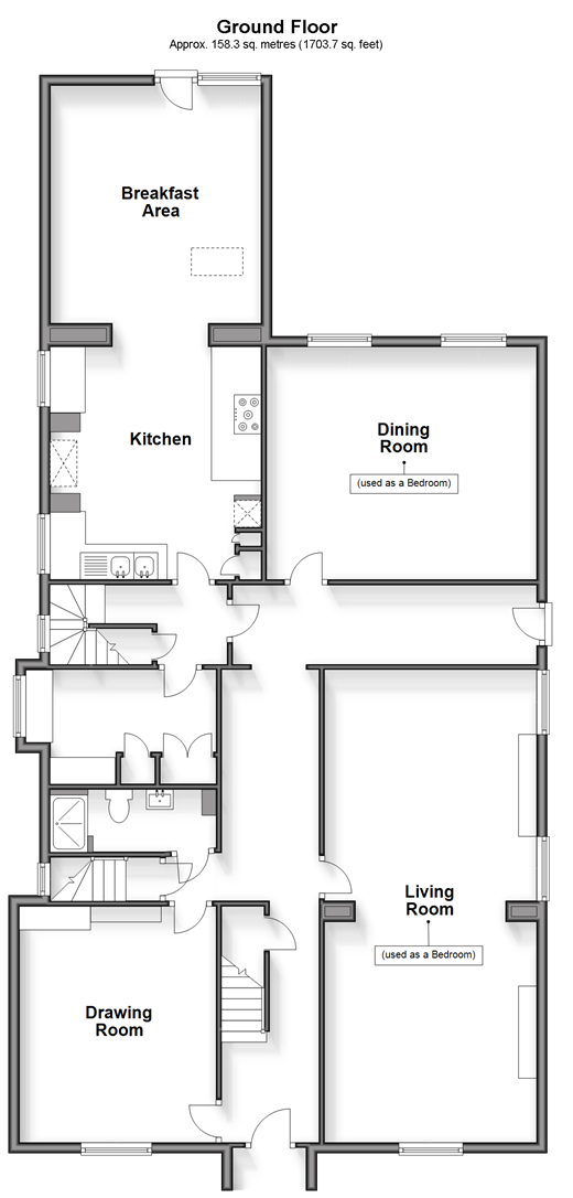 We moved here about 20 years ago and it has been a delightful home but it is now time to downsize. Harbledown is a charming village surrounded by orchards and close to Blean Woods. There is a village pub, a convenience store and a cricket club while nearby Blean includes a primary school rated Outstanding by Ofsted. Canterbury has excellent grammar and private schools, three universities, historic buildings, high street stores and individual shops as well as restaurants, pubs, cinemas and two theatres. Room sizes:SPLIT LEVEL GROUND FLOOREntrance HallLiving Room: 28'9 (8.77m) x 13'0 (3.97m) narrowing to 12'0 (3.66m)Drawing Room: 13'9 x 12'1 (4.19m x 3.69m)Shower RoomUtility Room: 11'5 (3.48m) narrowing to 10'2 (3.10m) x 6'9 (2.06m)Dining Room: 16'6 x 14'3 (5.03m x 4.35m)Kitchen Area: 14'6 x 12'7 (4.42m x 3.84m)Breakfast Area: 14'6 x 12'0 (4.42m x 3.66m)BASEMENTCellar: 31'0 (9.46m) x 14'2 (4.32m) narrowing to 11'4 (3.46m)FIRST FLOORLandingBedroom 2: 13'2 x 12'1 (4.02m x 3.69m)Bedroom 3: 13'9 x 12'1 (4.19m x 3.69m)Bedroom 4: 14'11 x 10'3 (4.55m x 3.13m)Bathroom: 8'1 x 6'0 (2.47m x 1.83m)Main Bedroom: 16'8 x 14'9 (5.08m x 4.50m)Dressing Room: 14'4 x 7'0 into fitted wardrobes (4.37m x 2.14m)En-Suite Shower RoomBedroom 5: 14'11 x 10'3 (4.55m x 3.13m)Store RoomOUTSIDERear GardenFront GardenDriveway
