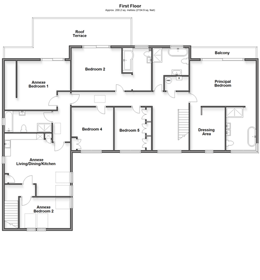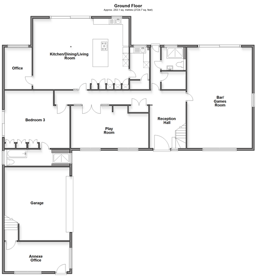 The accommodation is very flexible and ideal for multi-generational and/or staff requirements. For surfing enthusiasts the nearby Joss Bay is ideal and golfing aficionados can stroll round to the North Foreland Golf Club. Broadstairs has a mainline station where fast trains to London take less than an hour and a half and a wide variety of individual shops, bars, restaurants and annual events. There are also excellent education facilities including grammar and private schools. Room sizes:Reception Hall: 16'4 x 9'9 (4.98m x 2.97m)Bar/Games Room: 27'7 x 17'8 (8.41m x 5.39m)Boiler RoomShower Room: 6'3 x 5'6 (1.91m x 1.68m)Play Room: 21'5 x 11'6 (6.53m x 3.51m)Kitchen/Dining/Living Room: 26'2 x 19'5 (7.98m x 5.92m)Office: 11'6 x 7'9 (3.51m x 2.36m)Utility Room: 8'7 x 5'3 (2.62m x 1.60m)Pantry CupboardBedroom: 17'9 x 15'9 (5.41m x 4.80m)En Suite Bath/Shower Room: 17'1 x 4'5 (5.21m x 1.35m)Annexe Office: 17'6 x 8'2 (5.34m x 2.49m)FIRST FLOORLandingPrincipal Bedroom: 18'3 x 12'3 (5.57m x 3.74m)Dressing Area: 11'7 x 9'5 (3.53m x 2.87m)En-suite Bath/Shower Room: 11'3 x 7'6 (3.43m x 2.29m)BalconyFamily Bath/Shower Room: 9'11 x 7'3 (3.02m x 2.21m)Bedroom 2: 13'5 x 11'4 (4.09m x 3.46m)Walk In Wardrobe/En Suite: 11'4 x 7'8 (3.46m x 2.34m)Roof Terrace: 26'5 x 7'1 (8.06m x 2.16m) plus 10'3 x 9'4 (3.13m x 2.85m)Bedroom 5: 11'6 x 9'7 into fitted wardrobes (3.51m x 2.92m)Bedroom 4: 11'5 x 11'4 (3.48m x 3.46m)Annexe Entrance HallAnnexe Living/Dining/Kitchen: 18'5 (5.62m) narrowing to 13'10 (4.22m) x 16'5 (5.01m)Annexe Bath/Shower Room: 12'6 x 5'8 (3.81m x 1.73m)Annexe Bedroom 1: 14'6 (4.42m) narrowing to 10'6 (3.20m) x 13'3 (4.04m)Annexe Walk In Wardrobe: 13'4 x 3'1 (4.07m x 0.94m)Annexe Bedroom 2: 14'1 x 8'4 (4.30m x 2.54m)OUTSIDERear GardenOutdoor Heated Swimming PoolOutdoor KitchenSaunaHot TubDrivewayDouble Garage: 20'1 x 18'1 (6.13m x 5.52m)