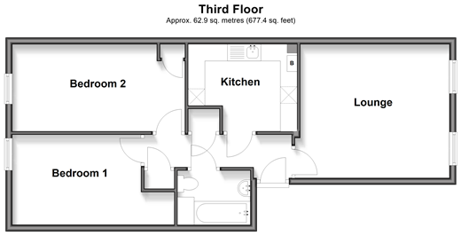Please refer to the footnote regarding the services and appliances. Room sizes:Entrance HallLounge: 15'3 x 13'2 (4.65m x 4.02m)Kitchen: 10'8 x 8'6 (3.25m x 2.59m)Bedroom 1: 17'0 x 8'3 (5.19m x 2.52m)Bedroom 2: 15'11 x 8'10 (4.85m x 2.69m)Bathroom: 7'1 x 5'2 (2.16m x 1.58m)1 Allocated Parking Space