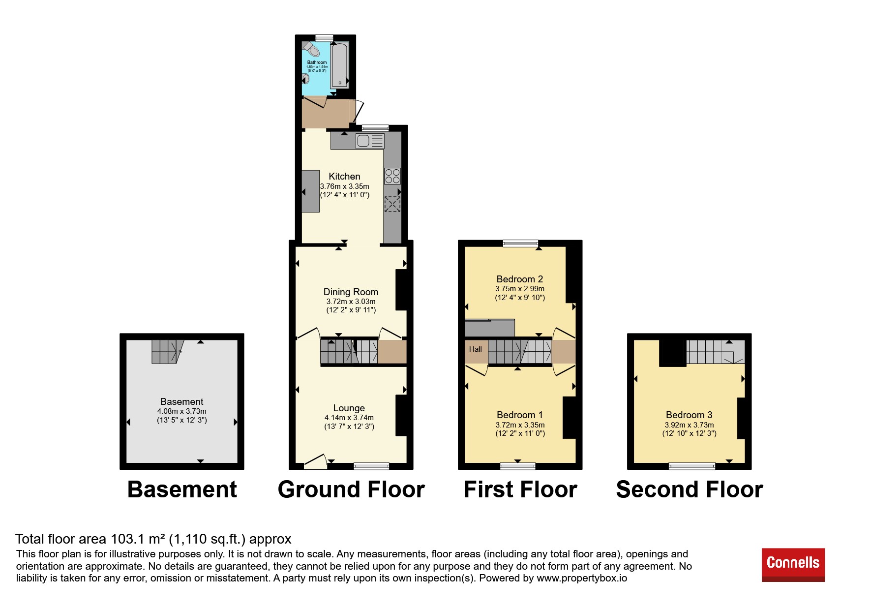 A well maintained family home with versatile living across four floors. Downstairs, bathroom, lounge, dining room, kitchen. Middle floor two double bedrooms and on the top floor there is also a further double bedroom. The property also benefits from a cellar, large garden with a workshop.