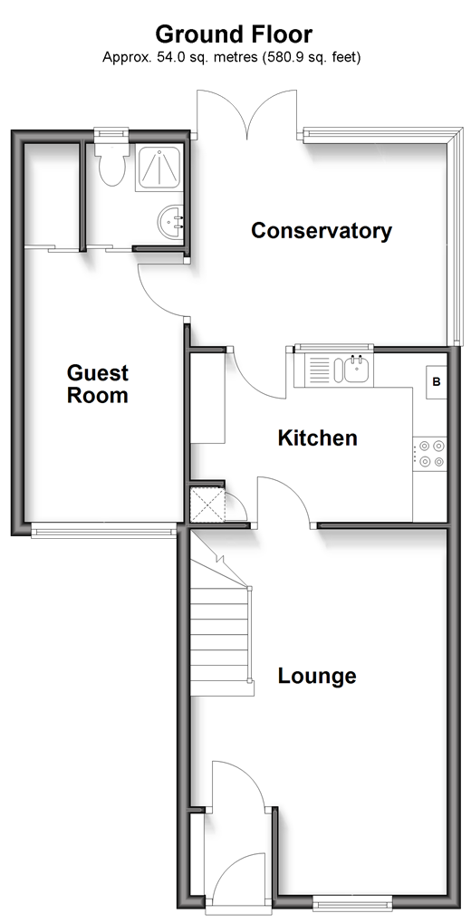 This well presented-detached house would be ideal for families. The house benefits from a ground floor bedroom and en-suite, there is a good sized lounge, separate kitchen and conservatory. There is also a private rear garden and off road parking. Room sizes:Entrance HallwayLounge: 17'5 x 12'1 (5.31m x 3.69m)Kitchen: 12'9 x 8'1 (3.89m x 2.47m)Conservatory: 11'2 x 9'7 (3.41m x 2.92m)Guest Room: 12'7 x 7'5 (3.84m x 2.26m)En-Suite Shower Room: 4'6 x 4'4 (1.37m x 1.32m)LandingBedroom 1: 12'1 x 10'3 (3.69m x 3.13m)BathroomBedroom 2: 12'1 x 8'2 (3.69m x 2.49m)Off Road ParkingGarden to Rear