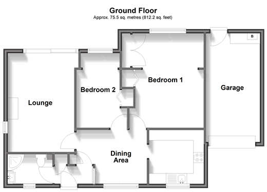 Please refer to the footnote regarding the services and appliances. Room sizes:Entrance HallLounge: 16'1 x 11'2 (4.91m x 3.41m)Dining Area: 11'2 x 8'10 (3.41m x 2.69m)Kitchen: 8'9 x 8'9 (2.67m x 2.67m)Bedroom 1: 15'7 x 8'9 (4.75m x 2.67m)Bedroom 2: 12'9 x 8'9 (3.89m x 2.67m)Shower Room: 7'3 x 5'7 (2.21m x 1.70m)PorchGarageFront GardenRear GardenDrive