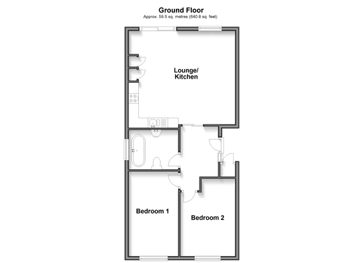 Please refer to the footnote regarding the services and appliances. Room sizes:Entrance HallwayBedroom 2: 13'8 x 9'4 (4.17m x 2.85m)Bedroom 1: 14'6 x 8'2 (4.42m x 2.49m)BathroomKitchen/Lounge: 18'0 x 16'4 (5.49m x 4.98m)GarageRear Garden