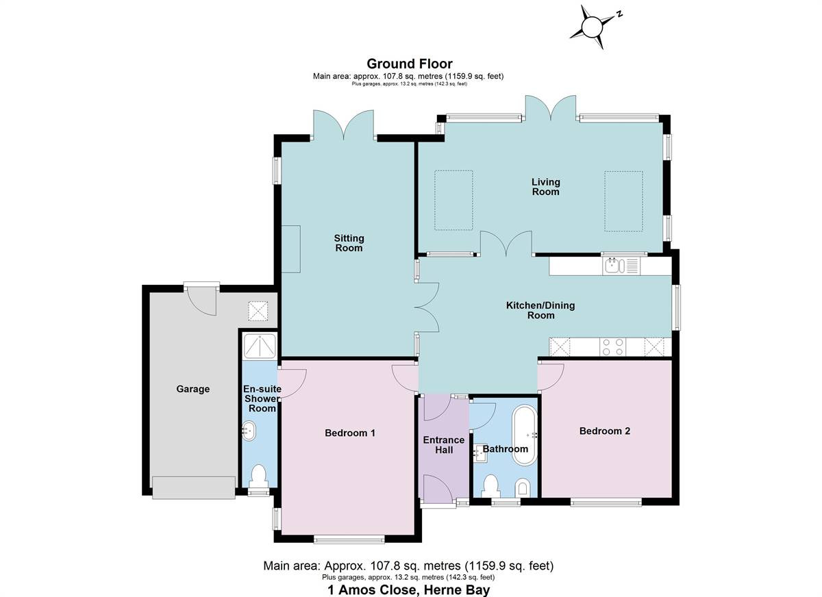 The seafront with stunning walks along 'The Downs' is just 0.9 miles away with popular cycle paths leading as far as Birchington in one direction and Whitstable in the other. Herne Bay town centre is just moments away where you will find a good range shopping, restaurants leisure amenities including rowing, sailing and yacht clubs along with a swimming pool and cinema. The harbour town of Whitstable is only 5.5 miles distant which enjoys a variety of shopping, educational and leisure amenities including sailing, water sports and bird watching, as well as the seafood restaurants for which it has become renowned. The Cathedral city of Canterbury is 8.5 miles away with its theatre and cultural amenities, as well as benefiting from excellent public and state schools. The City also boasts the facilities of a major shopping centre enjoying a range of mainstream retail outlets as well as many individual shops. Excellent transport links are nearby with Herne Bay mainline train station being 1.5 miles away providing direct links to London Victoria in approximately 88 minutes and London St Pancras in approximately 86 minutes. Easy access to the A299 is less than a mile away providing road links to London via the M2.