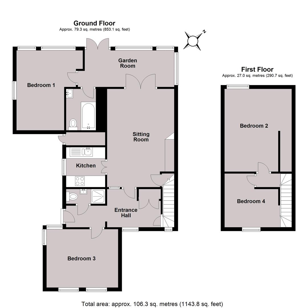 The generously proportioned accommodation is arranged on the ground floor to provide an entrance hall, spacious sitting room, kitchen, garden room, two double bedrooms and two bathrooms. The first floor comprises two further bedrooms including the generous principal bedroom with views of the sea.
