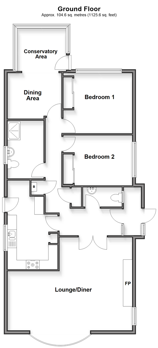 Please refer to the footnote regarding the services and appliances. Room sizes:PorchHallwayCloakroomLounge/Diner: 22'5 x 16'8 (6.84m x 5.08m)Kitchen: 15'9 x 9'2 (4.80m x 2.80m)Wet RoomBedroom 1: 12'7 x 9'0 (3.84m x 2.75m)Bedroom 2: 11'7 x 10'4 (3.53m x 3.15m)Dining Area: 9'11 x 8'2 (3.02m x 2.49m)Conservatory Area: 9'11 x 8'2 (3.02m x 2.49m)DrivewayRear GardenGarage