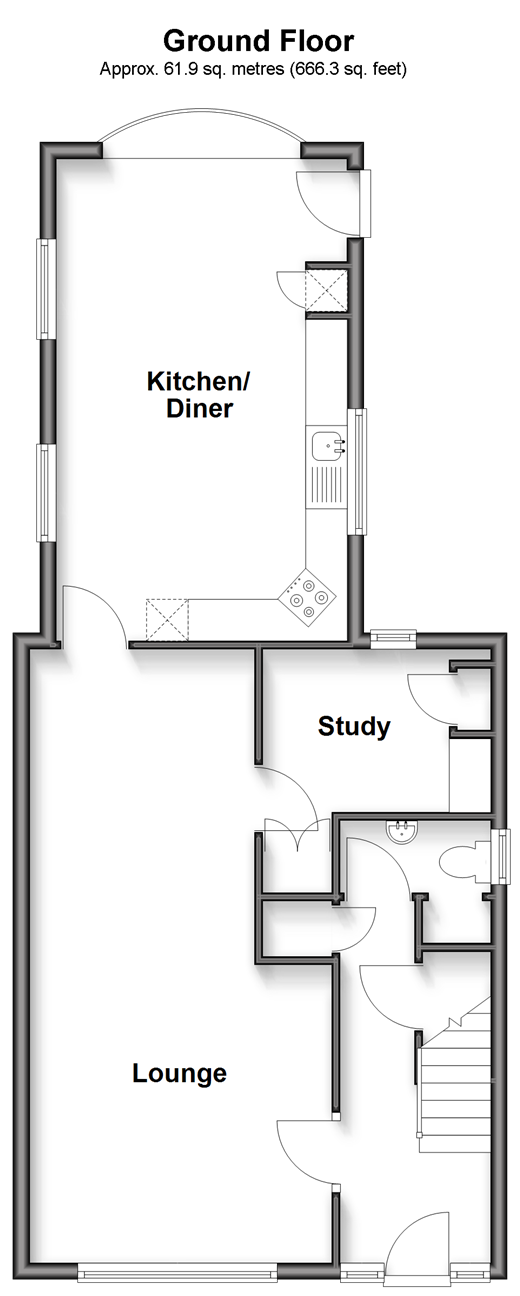 Please refer to the footnote regarding the services and appliances. Room sizes:Entrance HallCloakroomStudy: 9'2 x 6'4 (2.80m x 1.93m)Lounge: 24'2 (7.37m) x 11'9 (3.58m) narrowing to 8'9 (2.67m)Kitchen/Diner: 19'5 x 11'4 (5.92m x 3.46m)LandingBedroom 1: 11'8 x 10'2 up to wardrobe (3.56m x 3.10m)Bedroom 2: 10'2 x 9'9 (3.10m x 2.97m)Bedroom 3: 8'7 x 7'8 (2.62m x 2.34m)Shower RoomOff Road ParkingGarageFront & Rear Gardens