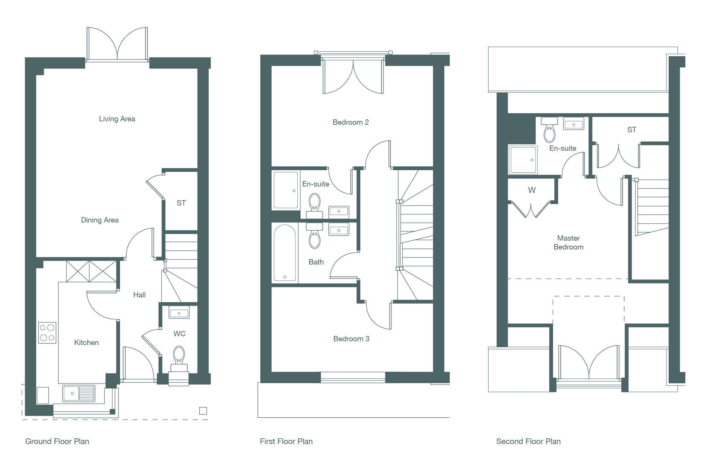 First floor consists of bedroom two with en-suite and Juliet balcony, bedroom three with a family bathroom in between. Second floor is the master suite with fitted wardrobes, Juliet balcony and large en-suite. The property has extremely good head heights throughout.