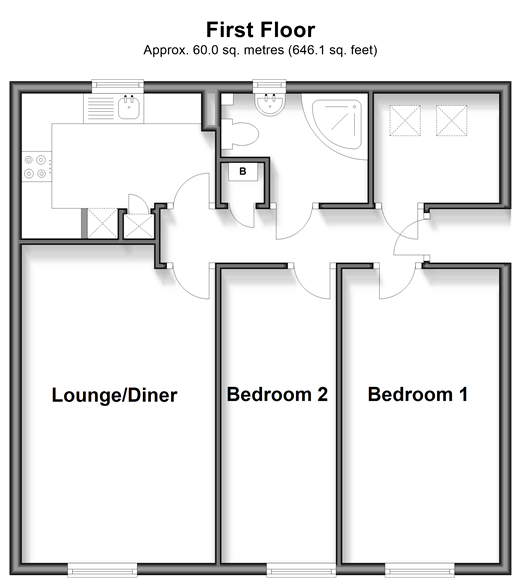 Please refer to the footnote regarding the services and appliances. Room sizes:Entrance HallwayBedroom 1: 15'5 x 8'5 (4.70m x 2.57m)Utility Room: 5'9 x 5'3 (1.75m x 1.60m)Bedroom 2: 15'9 x 5'4 (4.80m x 1.63m)Shower Room: 7'9 x 5'9 (2.36m x 1.75m)Lounge/Diner: 16'8 x 10'4 (5.08m x 3.15m)Kitchen: 10'4 x 7'8 (3.15m x 2.34m)Communal GardenResidents Car Park