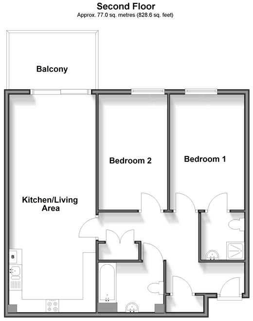 2 bedroom apartment ready to move into. This top floor apartment benefits from a large balcony and 2 bathrooms. Perfect for first time buyers and someone looking to downsize. Ideal location as within walking distance of Cinema, gyms, restaurants and dockside shopping outlets. Room sizes:Entrance HallwayKitchen/Living Area: 25'3 x 11'6 (7.70m x 3.51m)BalconyBedroom 1: 13'10 x 9'4 (4.22m x 2.85m)En-suite Shower RoomBedroom 2: 13'3 x 8'2 (4.04m x 2.49m)BathroomCommunal Gardens1.5 Allocated Parking Spaces