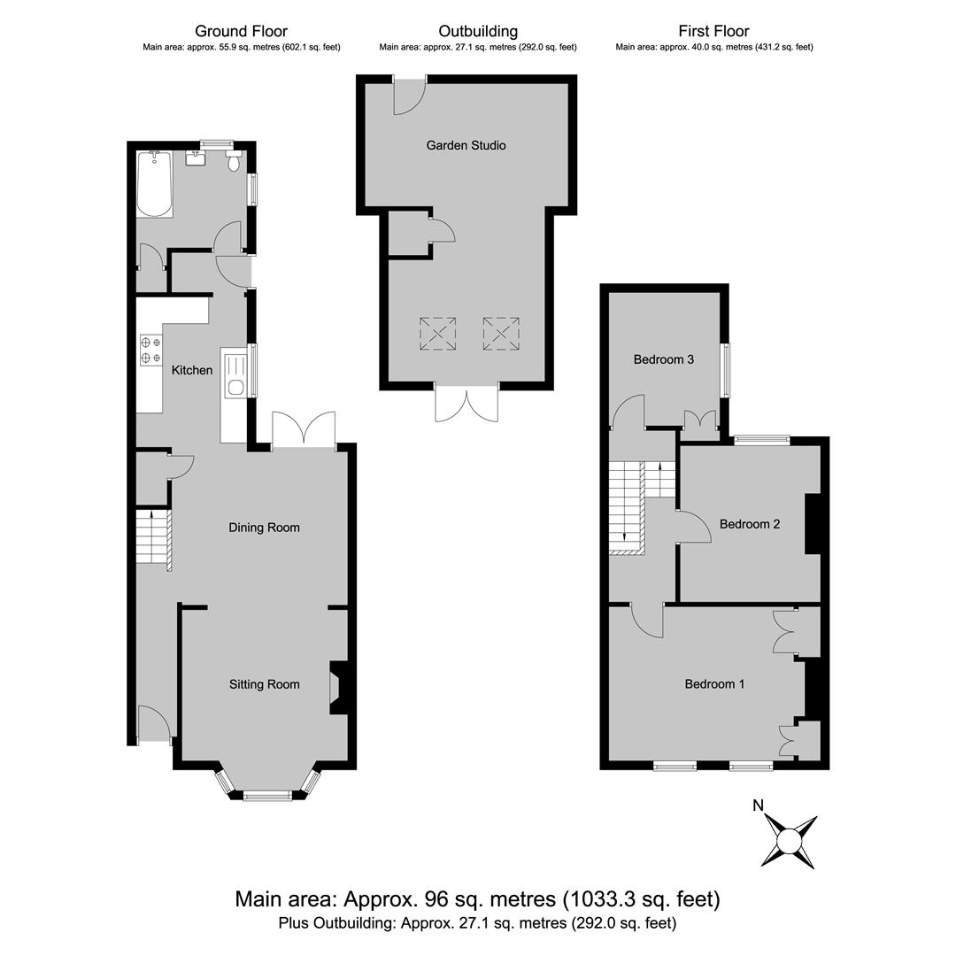 To the rear of the house, the garden extends to 48ft (14.7m), incorporating a decked seating area, making it the ideal environment for entertaining, and a large garden studio which would suit a variety or uses.
