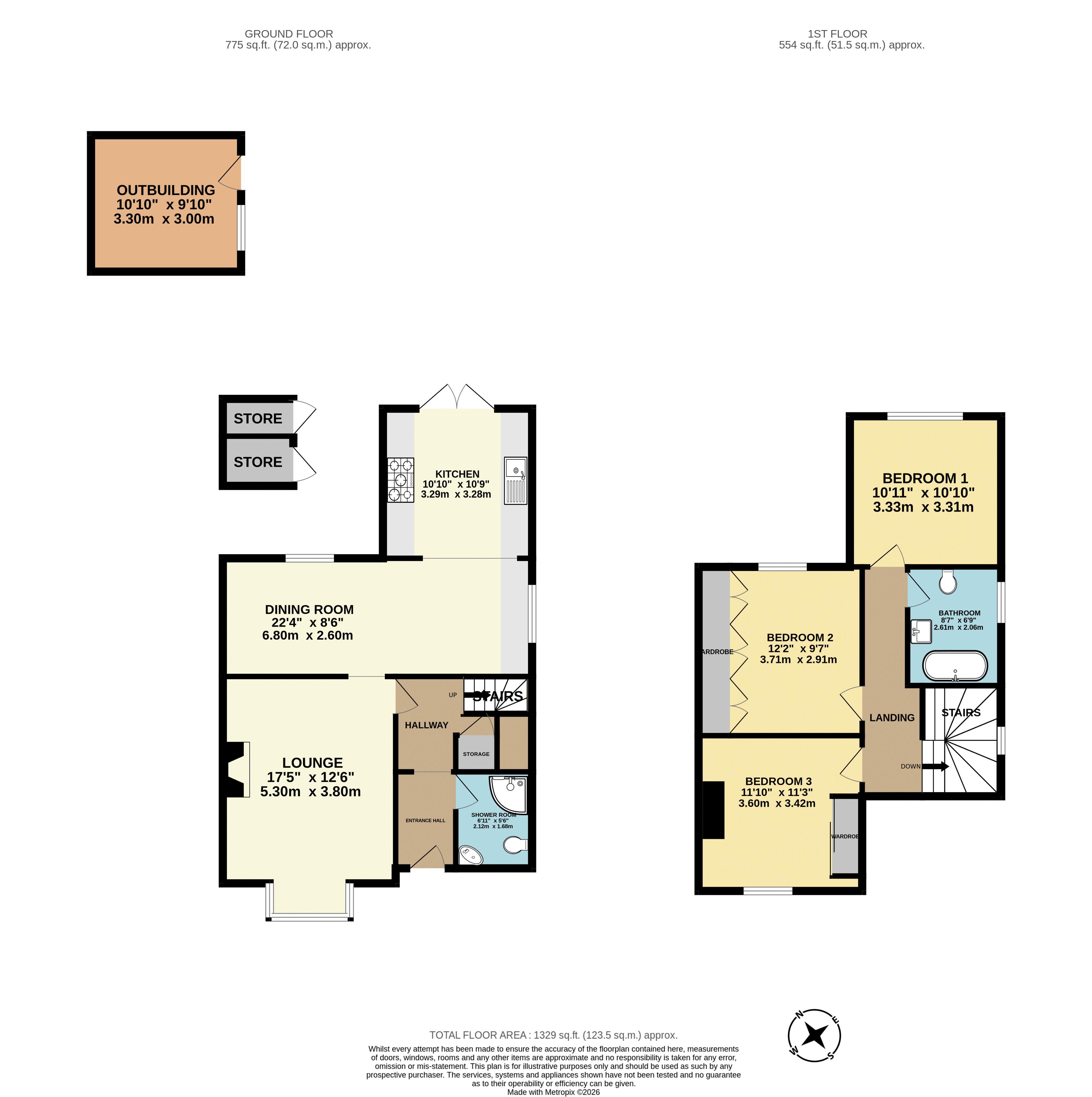 Internally, the ground floor comprises a welcoming lounge, a well-appointed kitchen, a dining room ideal for entertaining, and a convenient downstairs shower room.