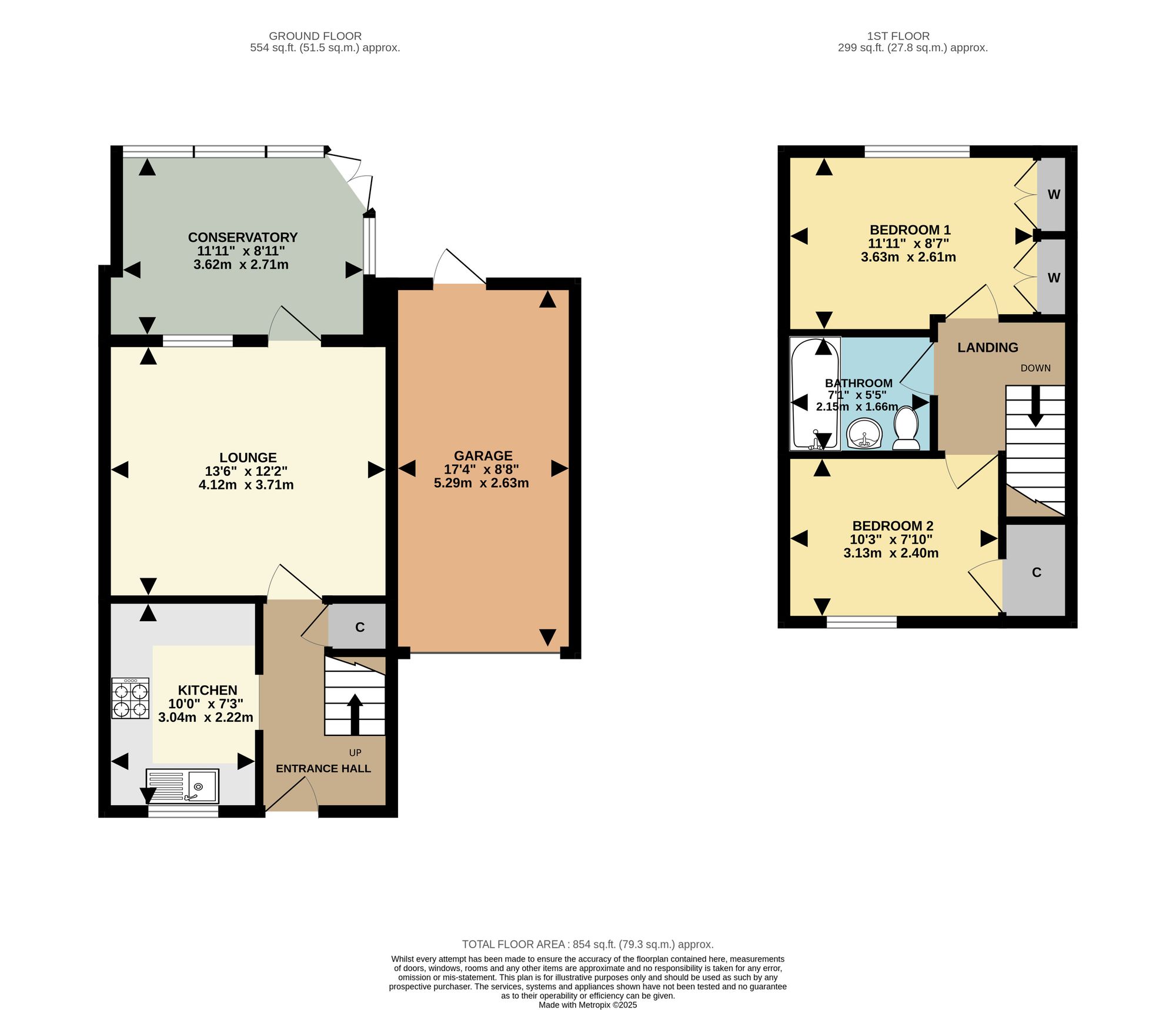 Upstairs, you’ll find two generous double bedrooms, with the principal bedroom benefiting from two fitted double wardrobes for excellent storage. Completing the first floor is an attractive modern bathroom fitted with a white suite.