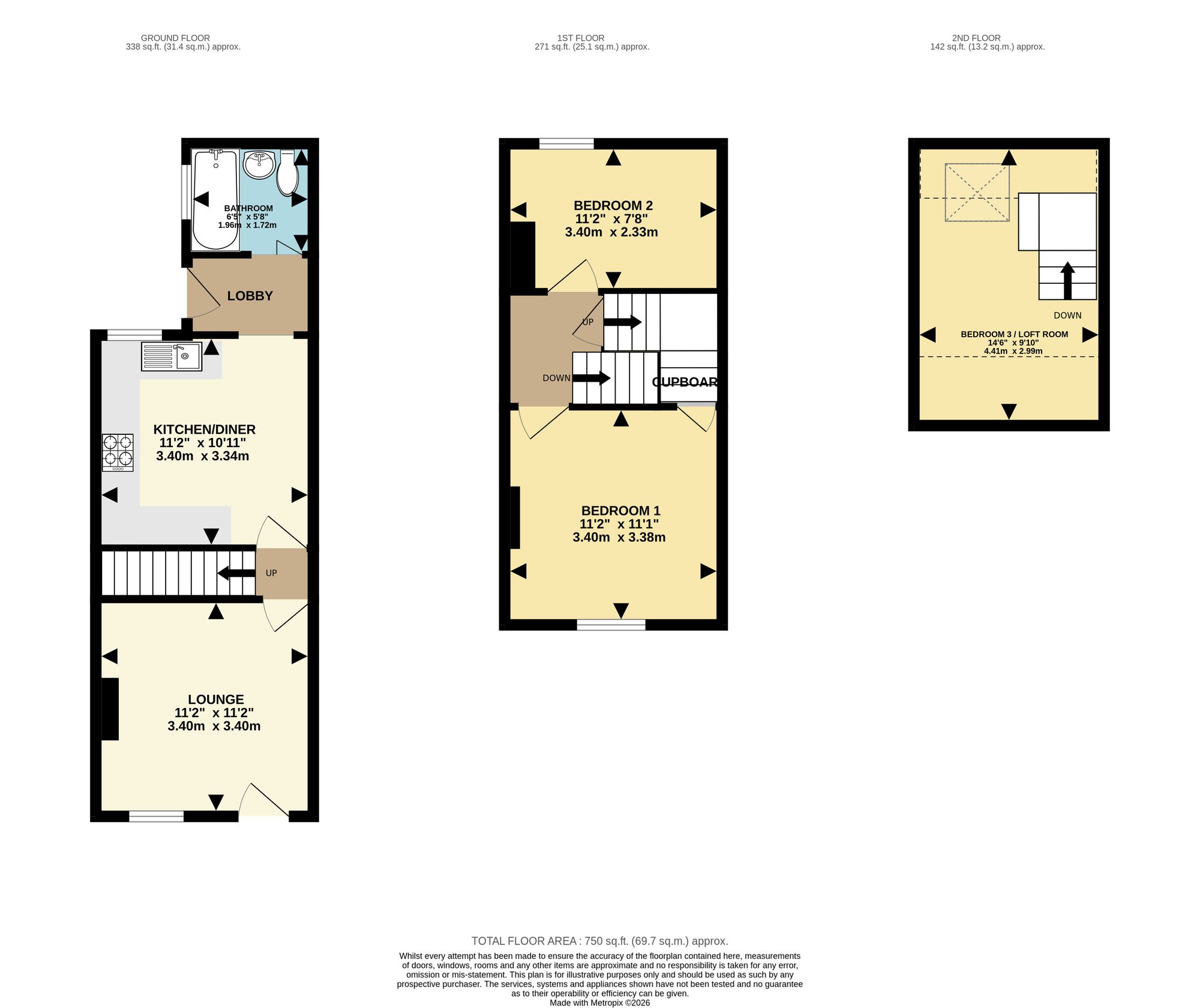 Upstairs, the first floor provides a well-proportioned main bedroom to the front, complete with a useful built-in storage cupboard, while a nicely sized second bedroom is located at the rear. A standout feature of the property is the versatile loft room which makes for a fantastic third bedroom. This creates an excellent versatile space as it could be used as a home office, hobby room, or additional storage if not needed as a third bedroom.