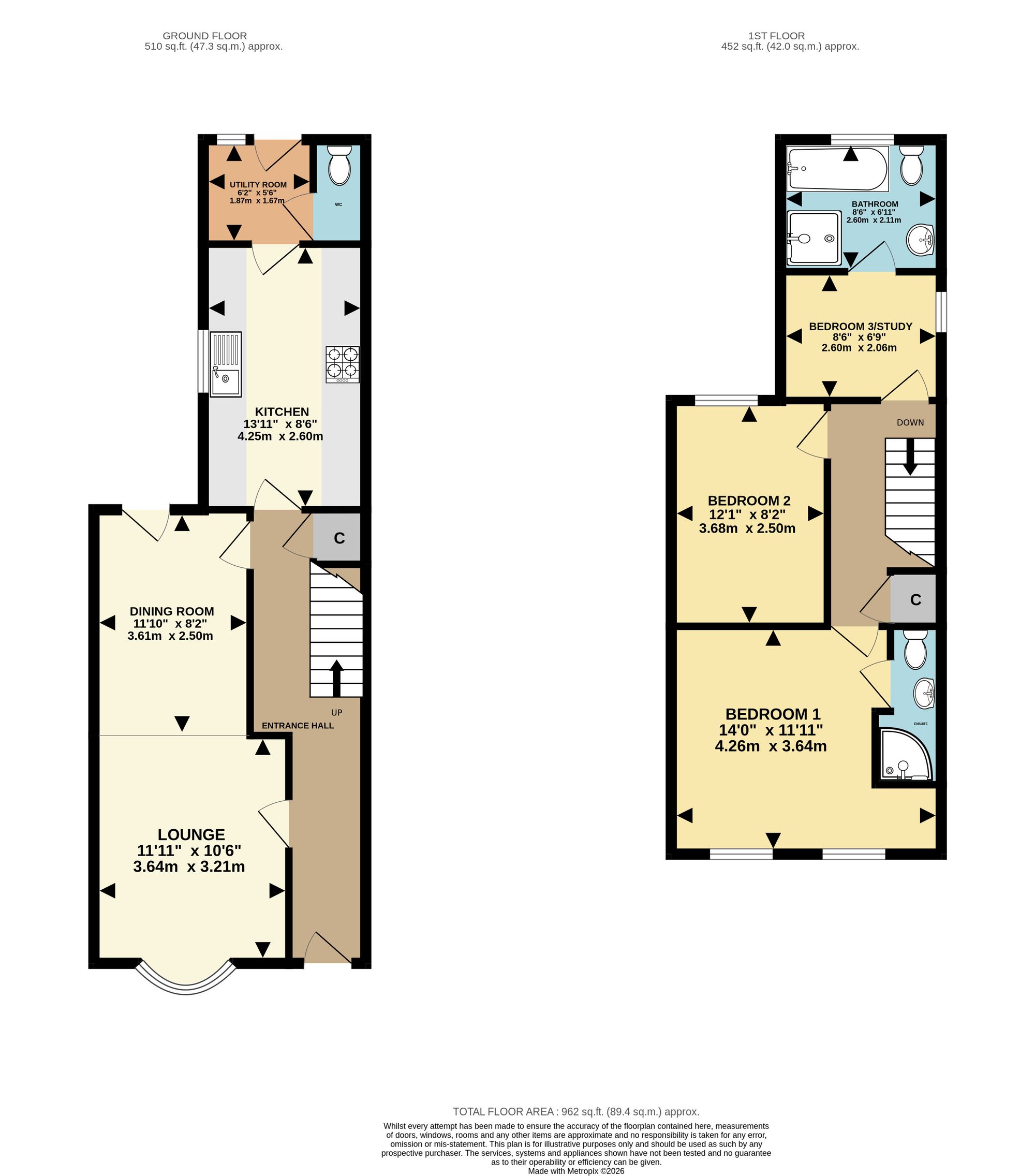 Upstairs continues to impress. There is a versatile study or third bedroom which can easily adapt to suit your needs, whether that is working from home or extra sleeping space. The main family bathroom is generous in size and features both a bath and a separate shower, finished with characterful beams and exposed brickwork that really add to the charm. Bedroom two is a comfortable double, while the main bedroom is a spacious double with two windows for plenty of natural light and its own private en suite shower room.