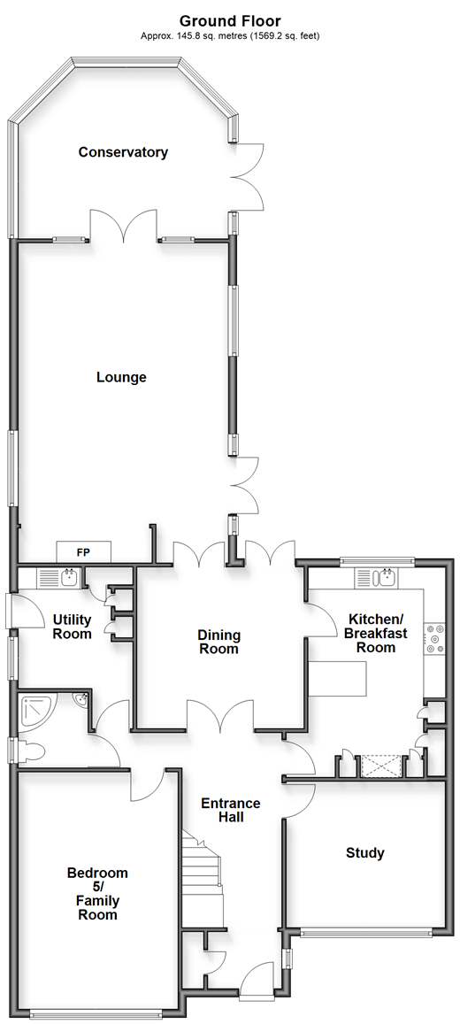This executive detached house is being offered to the market for the first time since it was originally built in 1985 and has been lived in lovingly by the same family. Enter the large granite set driveway via secure electric gates to the front which is large enough for multiple vehicles with side access to the rear patio area and garden which is very generous in size and perfect for hosting family parties and gatherings. Inside this impressive property has been well looked after with no expense spared throughout, you certainly won't be short of space. Check out the size of the lounge with its oak flooring which leads into a wonderful conservatory which looks out onto the garden which has been fitted with a new roof making it a useable extra space all year round. With the added bonus of an extra downstairs bedroom with separate shower room you could even move in mum and dad or use as a guest room. The loft space is large with huge potential to use as another bedroom or a games room perhaps. This really is not one to miss so give us a call to book your viewing. Room sizes:Entrance PorchEntrance HallStudy: 12'0 x 10'3 (3.66m x 3.13m)Kitchen: 16'3 x 10'10 (4.96m x 3.30m)Utiity Room: 10'3 x 8'5 (3.13m x 2.57m)Dining Room: 13'10 x 13'2 (4.22m x 4.02m)Shower Room: 5'6 x 5'4 (1.68m x 1.63m)Lounge: 25'2 x 16'0 (7.68m x 4.88m)Bedroom 5/Family Room: 17'9 x 11'9 (5.41m x 3.58m)Conservatory: 13'8 x 12'5 (4.17m x 3.79m)LandingBedroom 1: 21'8 x 13'10 (6.61m x 4.22m)En-suite Shower Room: 7'1 x 6'7 (2.16m x 2.01m)Bedroom 2: 15'9 x 10'3 (4.80m x 3.13m)Bedroom 3: 13'10 x 12'0 (4.22m x 3.66m)Bedroom 4: 12'10 x 12'6 (3.91m x 3.81m)Bathroom: 9'2 x 7'9 (2.80m x 2.36m)Loft Room: 32'4 x 18'9 (9.86m x 5.72m)OutbuildingFront DrivewayLarge Rear Garden