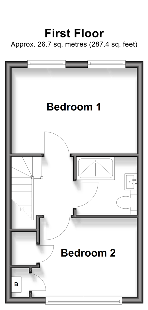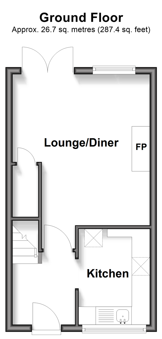 Please refer to the footnote regarding the services and appliances. Room sizes:Entrance HallLounge/Diner: 16'5 x 13'0 (5.01m x 3.97m)Kitchen: 9'2 x 7'0 (2.80m x 2.14m)LandingBedroom 1: 12'8 x 8'7 (3.86m x 2.62m)Bedroom 2: 10'10 x 8'6 (3.30m x 2.59m)Bathroom: 6'4 x 6'0 (1.93m x 1.83m)Front GardenGarage: 16'1 x 8'1 (4.91m x 2.47m)Rear Garden