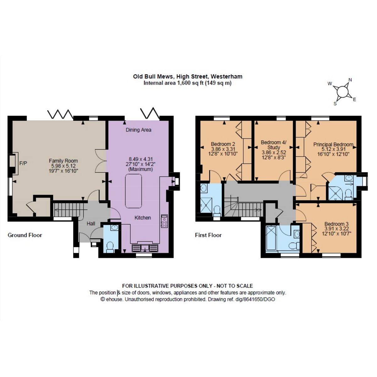 Tucked away at the end of an exclusive cul-de-sac development just off the High Street, Old Bull Mews is an attractive detached family home offering beautifully presented, light-filled accommodation and exceptional versatility for modern family living.Arranged over two generous floors, the property showcases neutral décor and quality fixtures throughout. The welcoming reception hall, with striking harlequin-patterned tiled flooring, sets the tone and leads to a thoughtfully designed ground floor ideal for both everyday family life and entertaining.The spacious dual-aspect L-shaped family room features an open fireplace, walk-in storage, and bi-fold doors opening onto the rear terrace, seamlessly connecting indoor and outdoor spaces. Double glazed doors open into an impressive triple-aspect kitchen and dining room, also with harlequin flooring.The kitchen is fitted with modern wooden wall and base units, complemented by a large central island with breakfast bar, Belfast sink, water softener, and integrated appliances including a Rangemaster stove. The dining area comfortably accommodates a substantial table and enjoys bi-fold doors to the terrace, creating a superb social hub.Upstairs, a generous landing with walk-in storage leads to a principal bedroom with mirrored fitted wardrobes and a contemporary en suite shower room. A further double bedroom also benefits from mirrored storage and its own en suite. Two additional double bedrooms one currently arranged as a study are served by a modern family bathroom, providing flexible accommodation to suit a variety of needs.Approached via a gravelled driveway providing private parking to both the front and side, the home enjoys a tucked-away position set behind a level lawn. To the rear, the enclosed garden is both manageable and private, bordered by mature trees and well-stocked flower and shrub beds. A paved terrace spanning the full width of the property accessible from both the family room and kitchen/dining room offers the perfect setting for entertaining and al fresco dining, while the level lawn provides space for children or pets to enjoy.Offering style, space and seclusion within an exclusive setting, Old Bull Mews presents a rare opportunity to acquire a superbly appointed family home in a prime village location. Early viewing is highly recommended to fully appreciate all that this exceptional property has to offer.