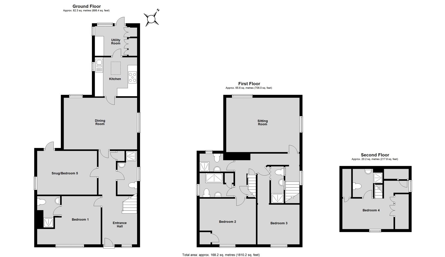 The generous accommodation is arranged over three floors to provide an inviting entrance hall, a first-floor sitting room with views of the sea, a dining room, kitchen, utility room, five bedrooms (three with en-suite shower rooms) and three further shower rooms.