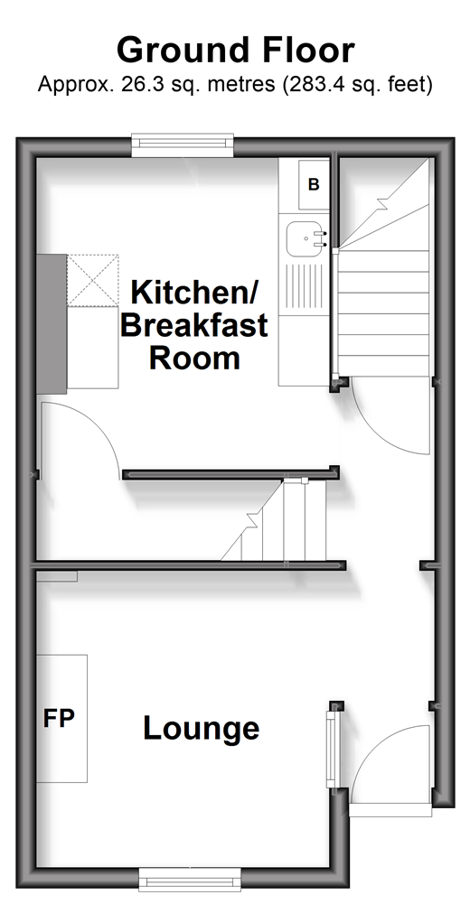 Please refer to the footnote regarding the services and appliances. Room sizes:Entrance HallKitchen/Breakfast Room: 10'0 x 8'7 (3.05m x 2.62m)Lounge: 9'10 (3.00m) narrowing to 8'8 (2.64m) x 9'6 (2.90m)HallwayBathroom: 8'5 x 6'7 (2.57m x 2.01m)LandingBedroom 1: 12'8 (3.86m) narrowing to 11'8 (3.56m) x 10'2 (3.10m)Bedroom 2: 11'9 x 9'6 (3.58m x 2.90m)Rear Garden