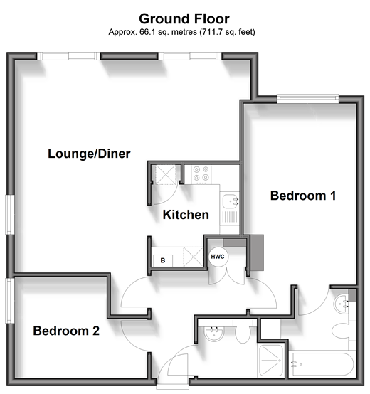 Please refer to the footnote regarding the services and appliances. Room sizes:Entrance HallLounge/Diner: (L-shaped) 21'0 x 19'6 (6.41m x 5.95m) plus 9'2 x 8'5 (2.80m x 2.57m)Kitchen: 8'4 x 7'3 (2.54m x 2.21m)Bedroom 1: 17'1 x 9'2 (5.21m x 2.80m)En-Suite BathroomBedroom 2: 10'11 x 8'3 (3.33m x 2.52m)Shower RoomAllocated Parking SpacePrivate TerraceCommunal Gardens