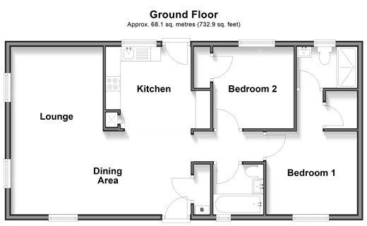 Please refer to the footnote regarding the services and appliances. Room sizes:Kitchen: 11'8 x 9'2 (3.56m x 2.80m)Lounge: 18'9 x 10'4 (5.72m x 3.15m)Dining Area: 11'2 x 9'4 (3.41m x 2.85m)HallwayBathroomBedroom 1: 16'3 x 9'4 (4.96m x 2.85m)En-suite Shower RoomBedroom 2: 9'2 x 9'1 (2.80m x 2.77m)Front and Rear GardensDriveway