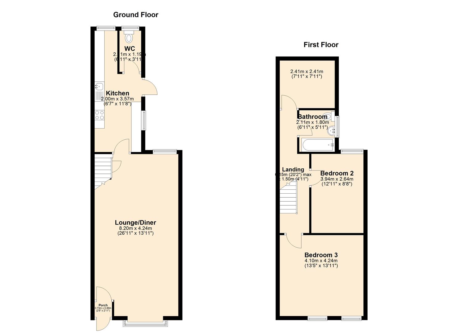 The property offers generous living accommodation throughout and comprises a bright and spacious living area, a well-proportioned kitchen and the added convenience of a downstairs WC. The layout makes it ideal for families or professionals looking for comfortable living space.