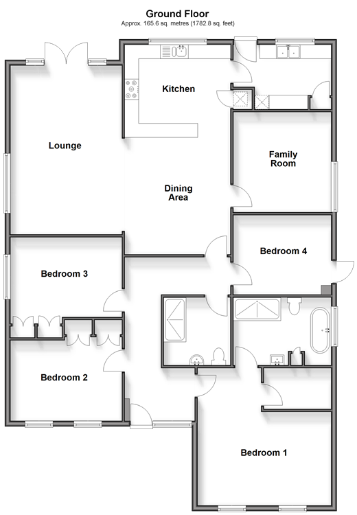 This immaculate detached bungalow is set on a generous sized plot with a detached double garage. The amazing sociable kitchen/dining area and lounge is perfect for today's lifestyle. Bedroom one has the real 'wow' factor with a walk-in wardrobe and a super-sized en-suite bathroom adding luxury to the home. The driveway for multiple cars adds convenience. Room sizes:Entrance HallKitchen/Dining Area: 24'5 x 12'11 (7.45m x 3.94m)Utility: 11'3 x 7'4 (3.43m x 2.24m)Lounge: 19'9 x 13'1 (6.02m x 3.99m)Family Room: 11'7 x 11'5 (3.53m x 3.48m)Bedroom 1: 16'0 x 15'0 (4.88m x 4.58m)Dressing RoomEn-Suite BathroomBedroom 2: 13'0 x 11'7 (3.97m x 3.53m)Bedroom 3: 13'0 x 9'3 (3.97m x 2.82m)Bedroom 4: 11'5 x 9'2 (3.48m x 2.80m)Shower RoomDrivewayDouble Garage: 23'10 x 17'9 (7.27m x 5.41m)Front & Rear GardensBar/Cabin: 11'9 x 9'0 (3.58m x 2.75m)
