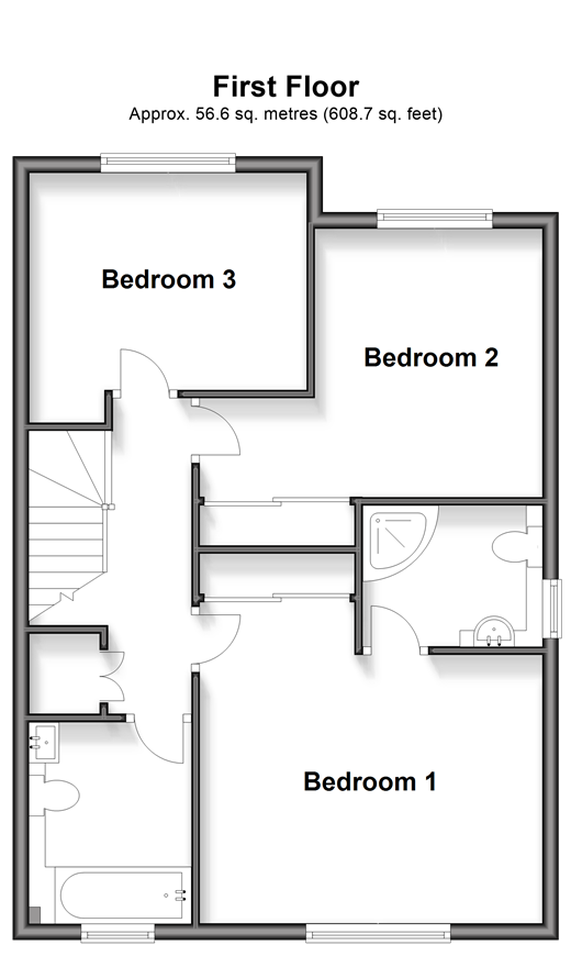 A fabulous modern detached family home with off street parking and amazing bathroom and shower room facilities plus quality decoration throughout. All bedrooms are of a generous size, with bedroom 1 having an en-suite, plus there is a family bathroom and downstairs shower room. Room sizes:Entrance HallShower RoomLounge: 14'5 x 12'7 (4.40m x 3.84m)Kitchen/Diner: 21'0 x 15'9 (6.41m x 4.80m)LandingBedroom 3: 11'3 x 8'7 (3.43m x 2.62m)Bedroom 2: 13'9 x 10'9 (4.19m x 3.28m)Bedroom 1: 14'0 x 12'4 (4.27m x 3.76m)En-Suite Shower RoomBathroomDriveway to front for 2 carsRear Garden