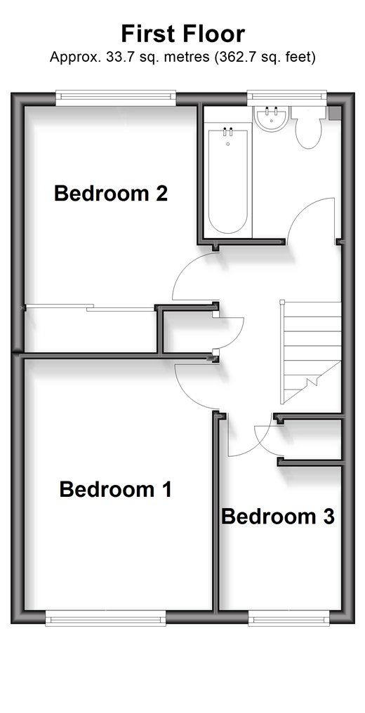 Please refer to the footnote regarding the services and appliances. Room sizes:Entrance PorchLounge: 15'0 x 14'0 (4.58m x 4.27m)Kitchen: 9'0 x 7'0 (2.75m x 2.14m)LandingBedroom 1: 12'0 x 8'11 (3.66m x 2.72m)Bedroom 2: 10'2 x 9'0 (3.10m x 2.75m)Bedroom 3: 9'0 x 6'0 (2.75m x 1.83m)BathroomRear GardenFront GardenDriveway/Garage To Rear