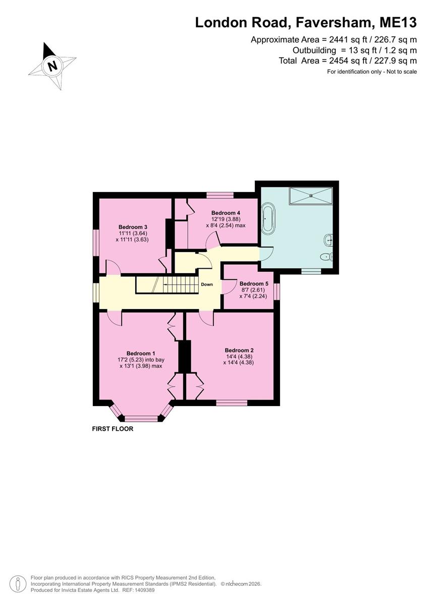 A modern fitted wet room is located at the end of the hall. There is a separate downstairs toilet, with access from outside. Stairs from the hall lead to a useful basement. On the first floor, there are five bedrooms, four of which are well proportioned doubles. The master bedroom is well lit, with its large bay window, featuring floor to ceiling built in cupboards. The oversized family bathroom provides a sprawling retreat designed for ultimate relaxation, featuring a roll top bath and large walk-in shower. Step outside into a garden designed for both serenity and celebration. This outdoor space offers the perfect balance of greenery and stylish social zones. A York stone patio is perfectly positioned to capture the morning sun, being accessed from the kitchen.