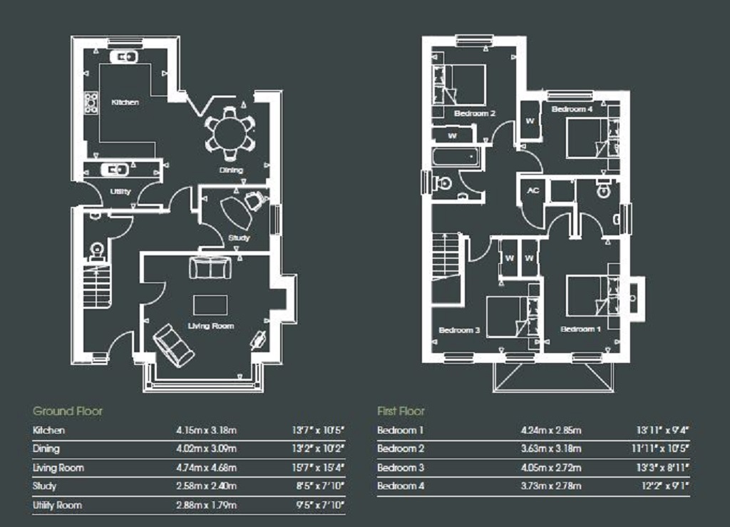 The Chamomile boasts 4 double bedrooms, all with fitted wardrobes, 1 family bathroom plus an en-suite to the principle bedroom and downstairs cloakroom. The ground floor offers a large open plan kitchen/dining area, a separate living room, utility room and study! Plot 23 also comes with a private driveway and single carport.