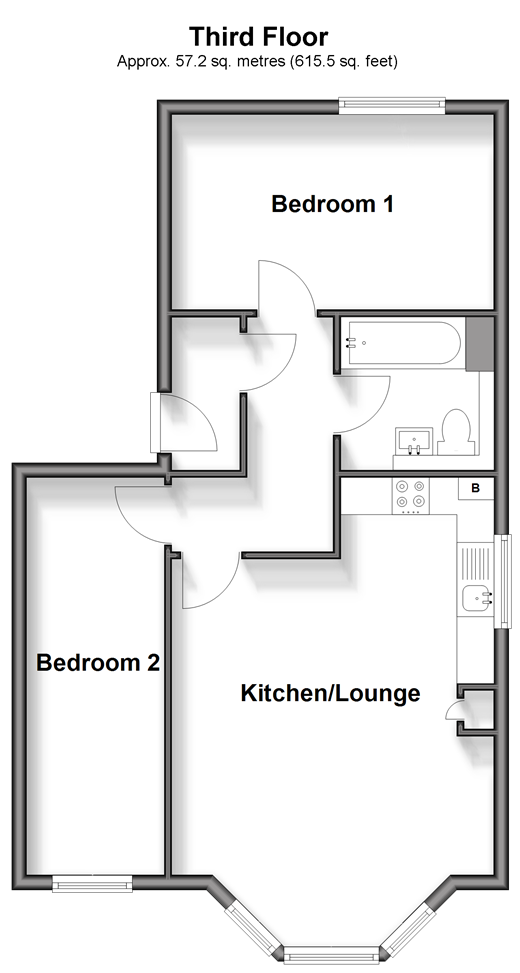Please refer to the footnote regarding the services and appliances. Room sizes:HallwayKitchen/Lounge: 20'5 x 12'4 (6.23m x 3.76m)Bedroom 1: 12'3 x 10'7 (3.74m x 3.23m)Bedroom 2: 16'11 x 8'0 (5.16m x 2.44m)Bathroom