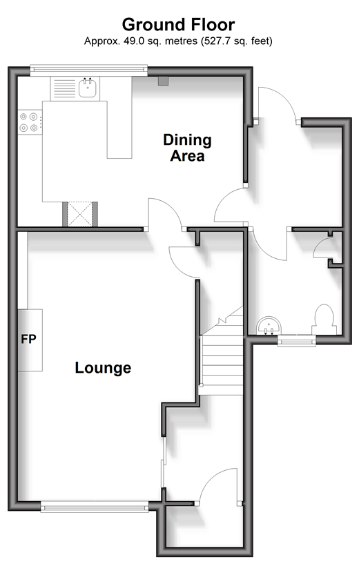 Please refer to the footnote regarding the services and appliances. Room sizes:Entrance PorchEntrance HallwayLounge: 17'5 x 11'9 (5.31m x 3.58m)Kitchen/Dining Area: 15'0 x 9'9 (4.58m x 2.97m)Utility Room: 7'0 x 4'8 (2.14m x 1.42m)CloakroomLandingShower RoomBedroom 1: 14'10 x 9'1 (4.52m x 2.77m)Bedroom 2: 12'7 x 7'11 (3.84m x 2.41m)Bedroom 3: 8'10 x 6'8 (2.69m x 2.03m)DrivewayRear Garden