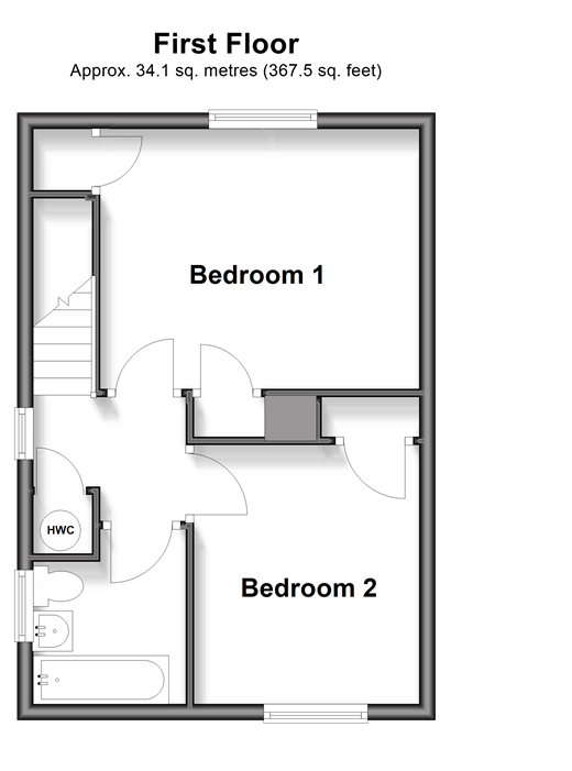 Please refer to the footnote regarding the services and appliances. Room sizes:Entrance HallLounge: 15'8 x 12'5 (4.78m x 3.79m)Kitchen: 10'6 x 9'11 (3.20m x 3.02m)LandingBedroom 1: 12'9 x 10'10 (3.89m x 3.30m)Bedroom 2: 10'5 x 9'10 (3.18m x 3.00m)BathroomToiletStorageFront GardenRear Garden