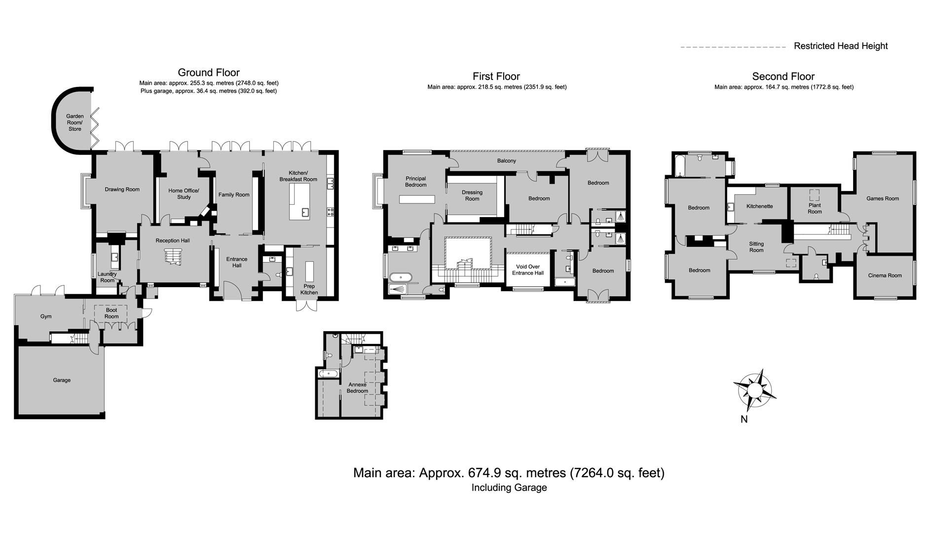 The property has been comprehensively extended and remodelled to a design by MEME Architects (completed 2019), creating approximately 7,264 sq ft (675 sq m) of beautifully finished accommodation including the garage, arranged over three floors.