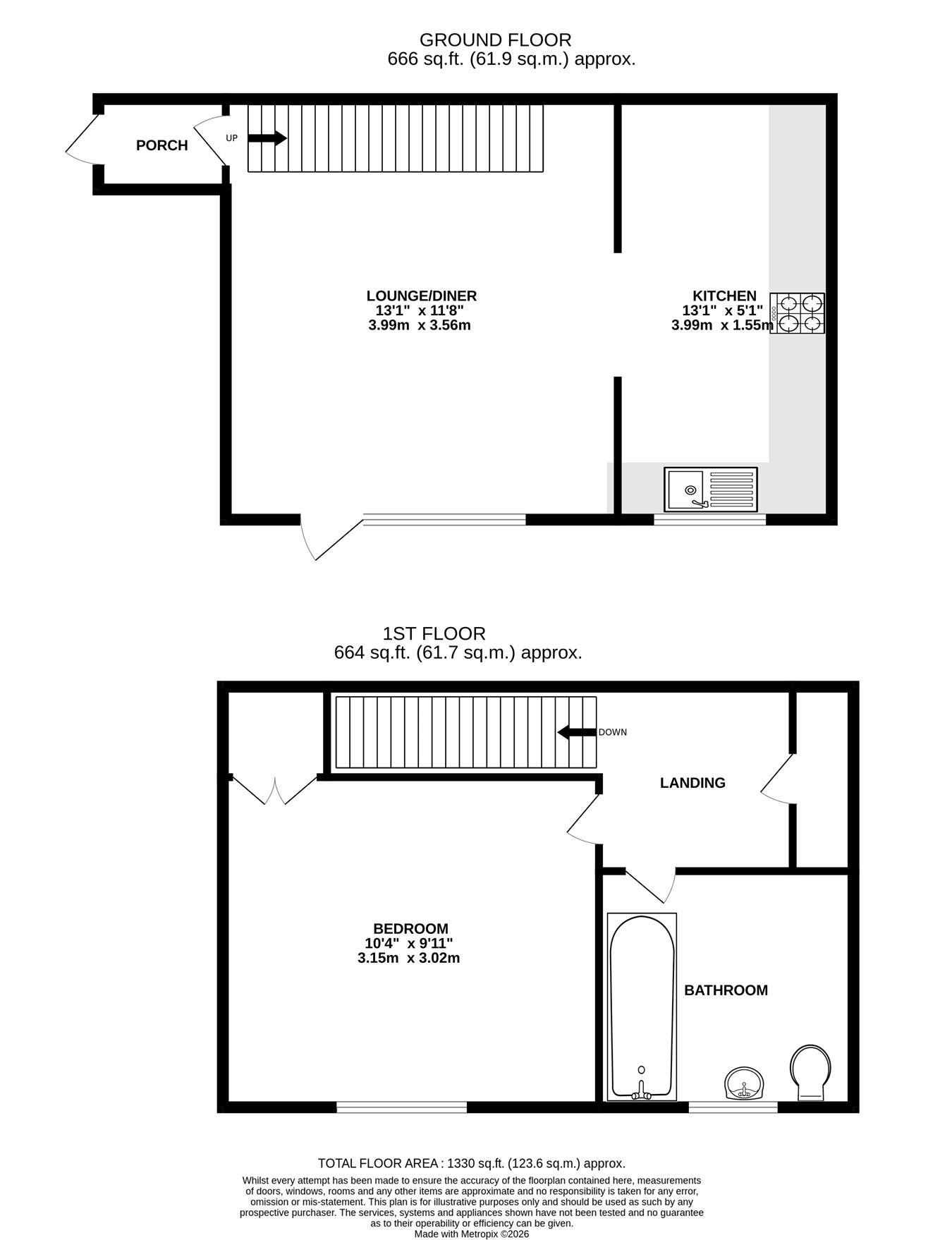 13' 1" x 5' 1" (3.99m x 1.55m)