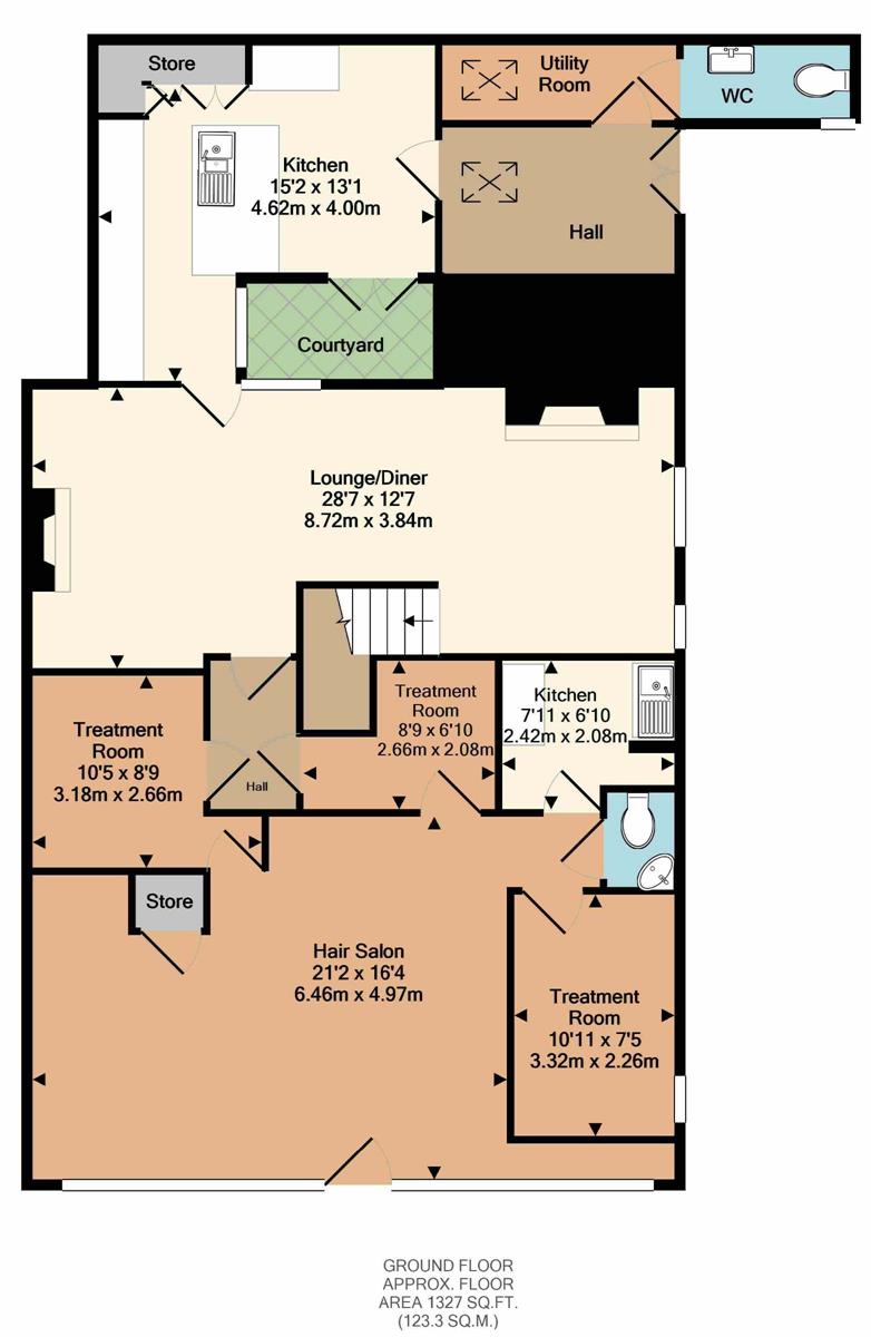 Self-contained shop with 3 treatment rooms/kitchen and toilet.