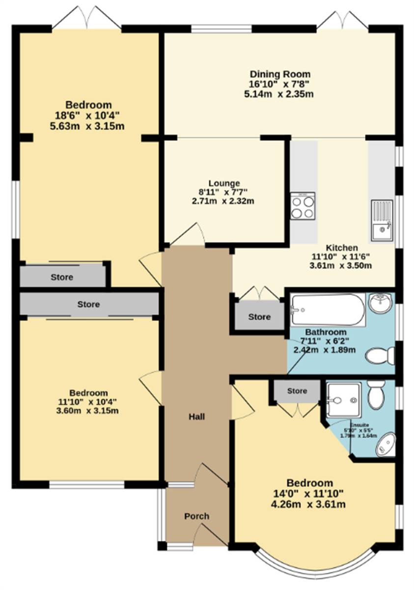 Bedroom One 14' 0 x 11' 10 (4.27m x 3.61m)