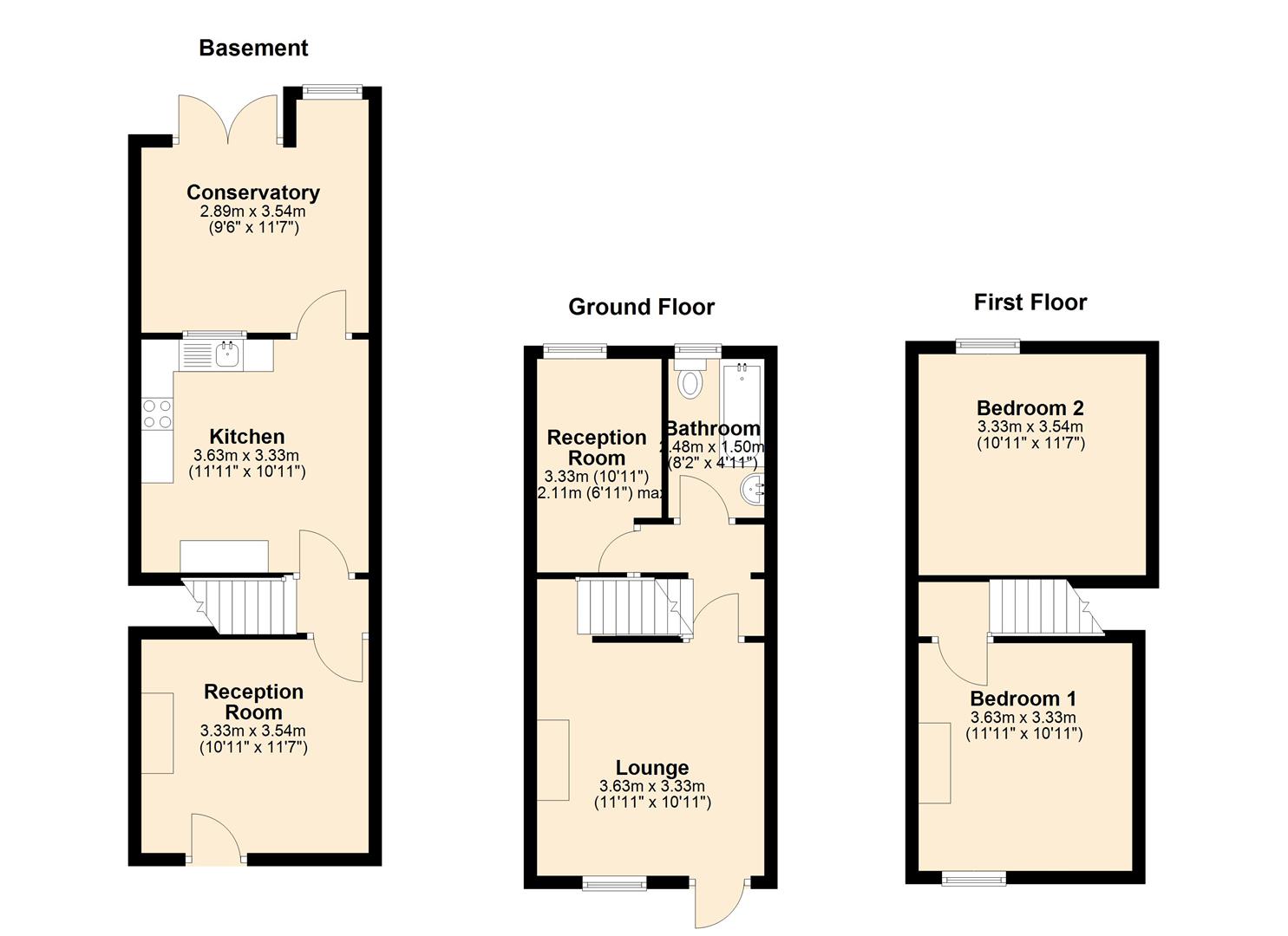 Four bedroom terraced house over three floors for a family let. The property has been newly decorated throughout, and has new carpets. On the lower ground floor you will find the kitchen, conservatory and bedroom. Ground floor is a lounge, bedroom and bathroom. On the top floor is two further bedrooms. Rear garden, easy access to town and train station completes this generous size home.
