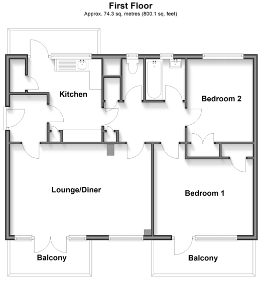 Please refer to the footnote regarding the services and appliances. Room sizes:Entrance HallKitchen: 11'6 x 9'6 (3.51m x 2.90m)Lounge/Diner: 19'5 x 12'7 (5.92m x 3.84m)BalconyInner HallwayBedroom 1: 12'10 x 12'7 (3.91m x 3.84m)BalconyBedroom 2: 11'6 x 9'5 (3.51m x 2.87m)BathroomSeparate ToiletCommunal Gardens