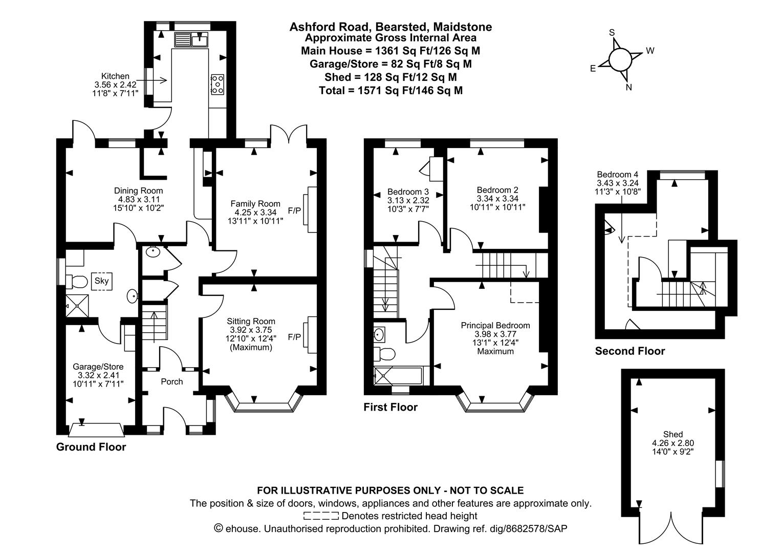 Set well back from the road, you approach the property via a generous driveway that offers parking for up to five cars, as well as additional space for potential expansion. Enter through the welcoming porch into the hallway that leads to an inviting sitting room, featuring a cosy log burner and a bright bay window. The family room serves as an additional reception room, complete with a fireplace and French doors that open to the garden, ideal for the warm summer months. The thoughtfully extended dining room and well-appointed kitchen provide lovely views of the outdoor space, as well as being an ideal area for entertaining. This floor further benefits from a partially converted garage that hosts a convenient downstairs shower room and additional storage space to front.