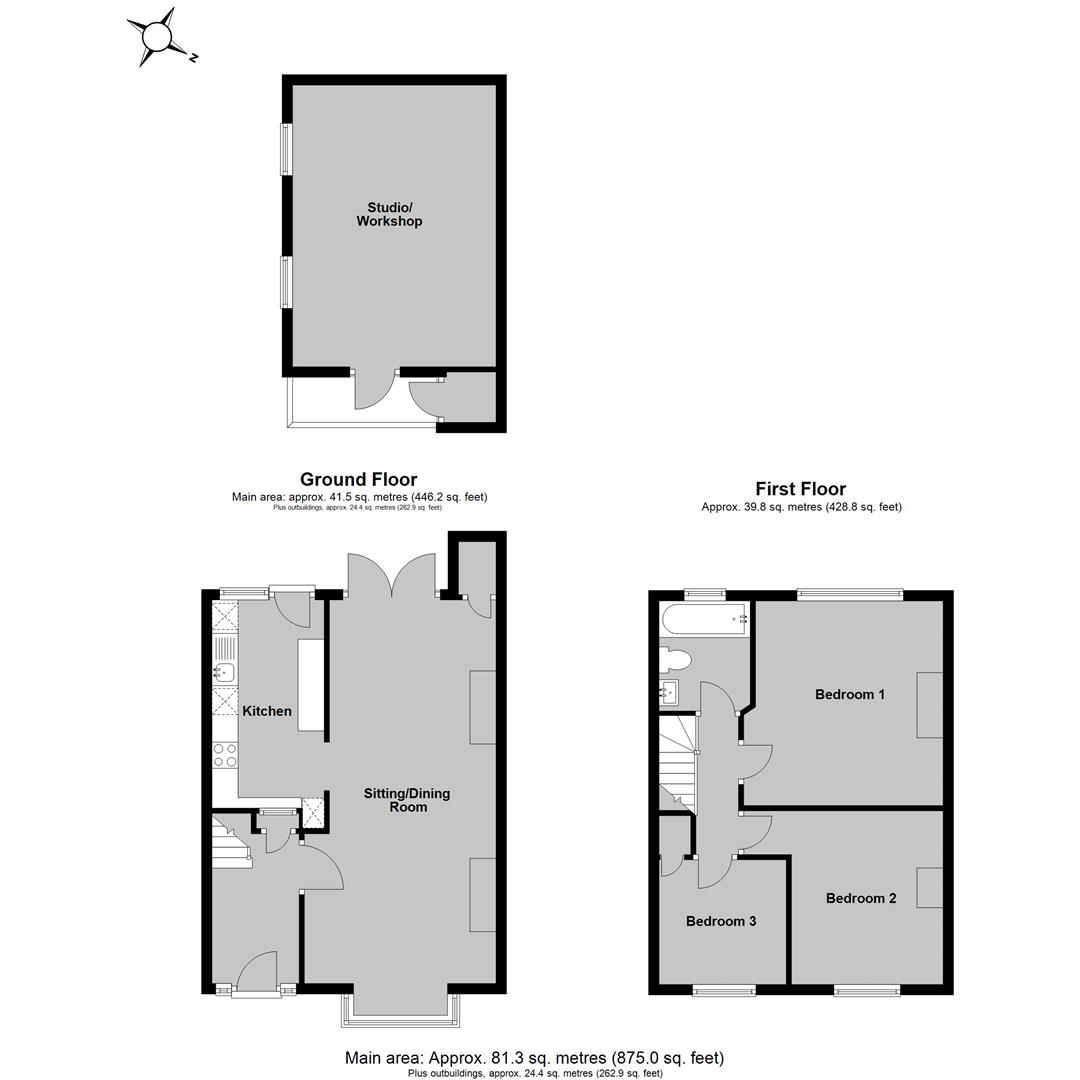 The accommodation is arranged on the ground floor to provide an entrance hall, an open-plan sitting/dining room with doors leading to the garden, and a contemporary kitchen. The first floor comprises three bedrooms (two doubles), and a well-appointed bathroom.