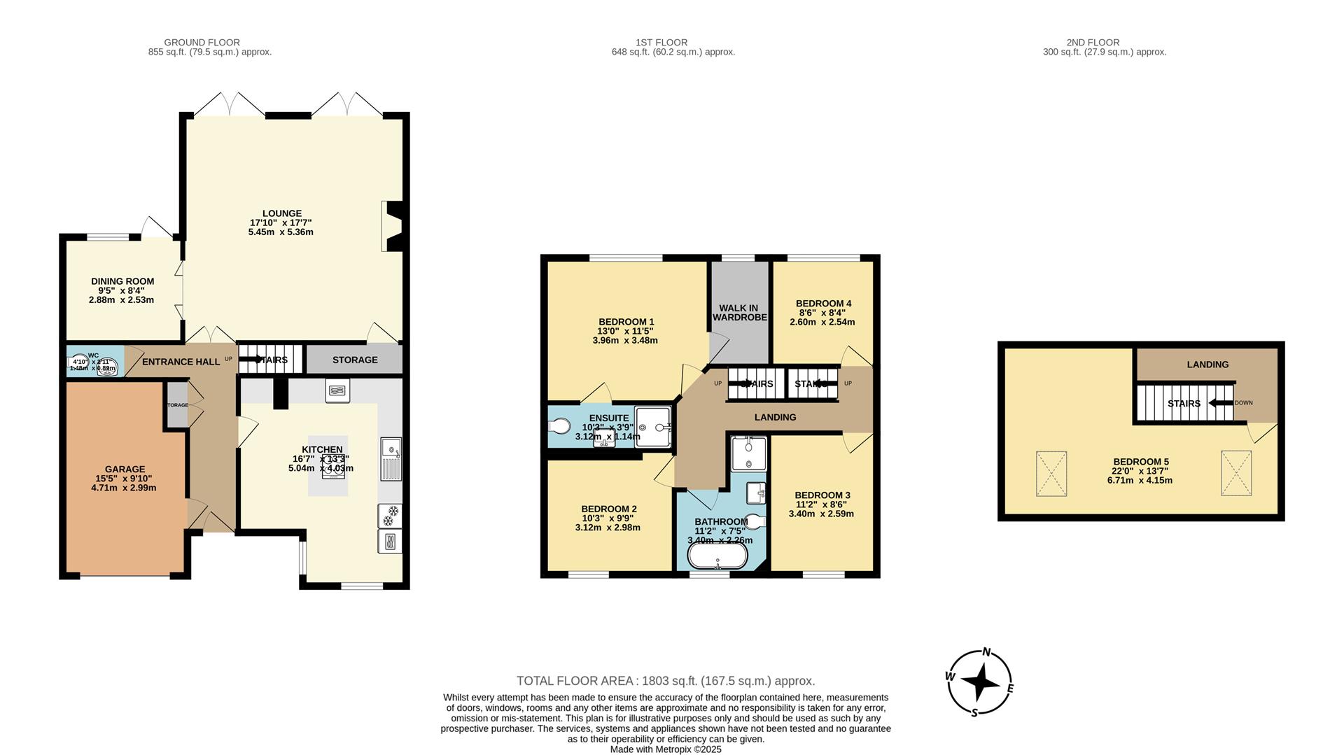 Upstairs, the home boasts five well-proportioned double bedrooms, including an impressive principal suite complete with a stylish en suite shower room and a walk-in wardrobe. A sleek and modern family bathroom serves the remaining bedrooms.
