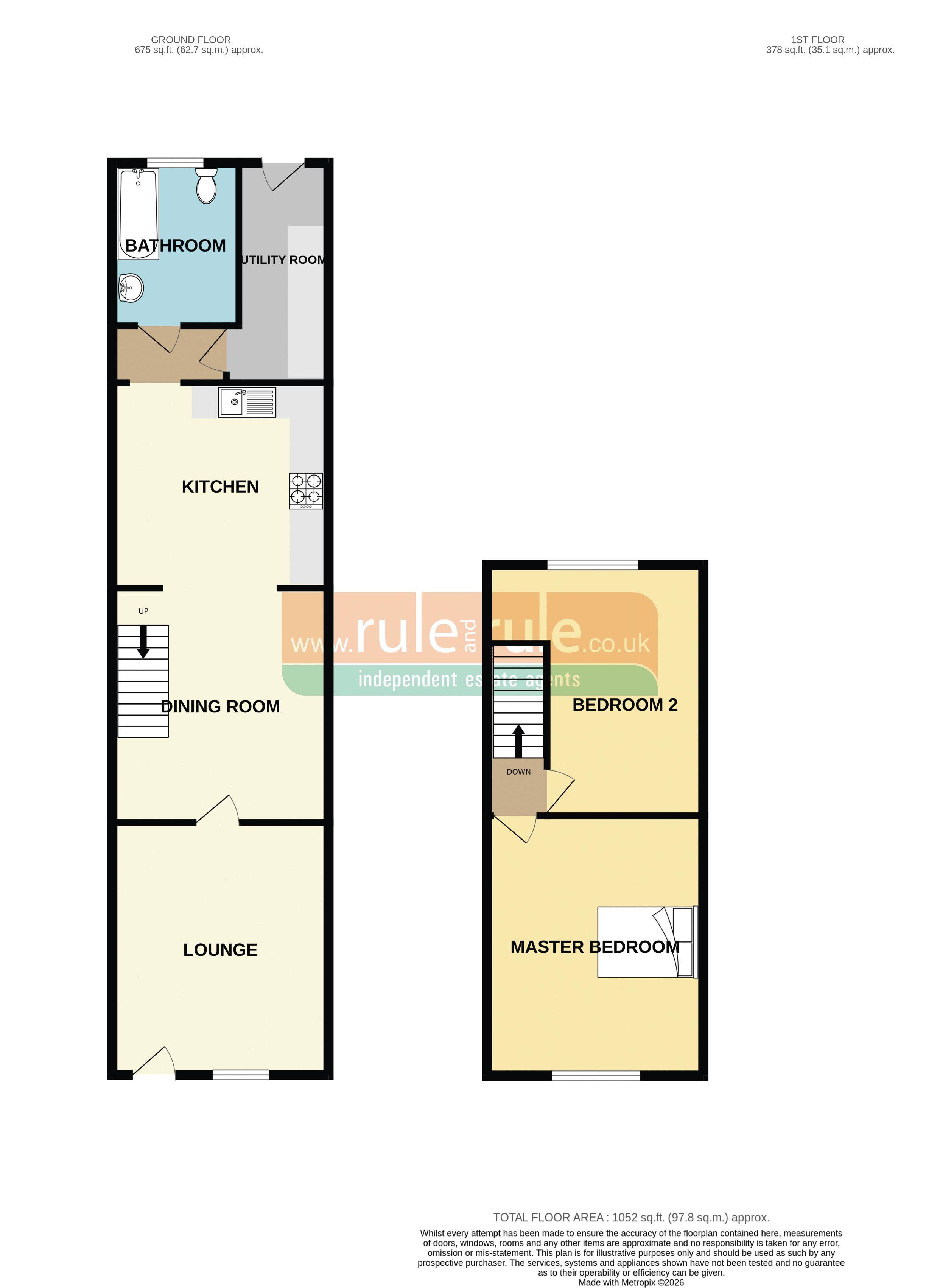 Upstairs, there are two well-presented double bedrooms, each decorated in contemporary tones. Outside, the enclosed rear garden offers a mix of patio and lawn, all bordered by secure fencing—an easy space to enjoy and maintain.