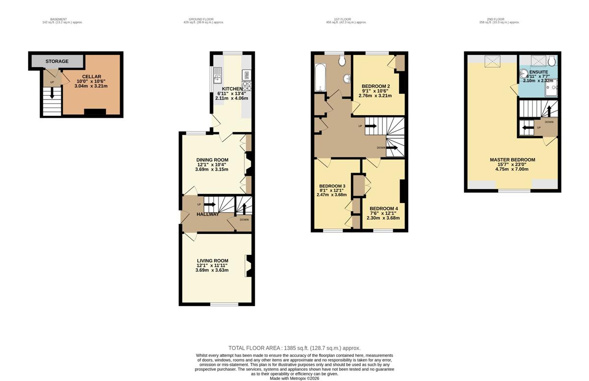 The home is entered via a side front door, opening into a welcoming entrance hallway, with stairs rising to the first floor and access to a useful cellar with separate storage room.