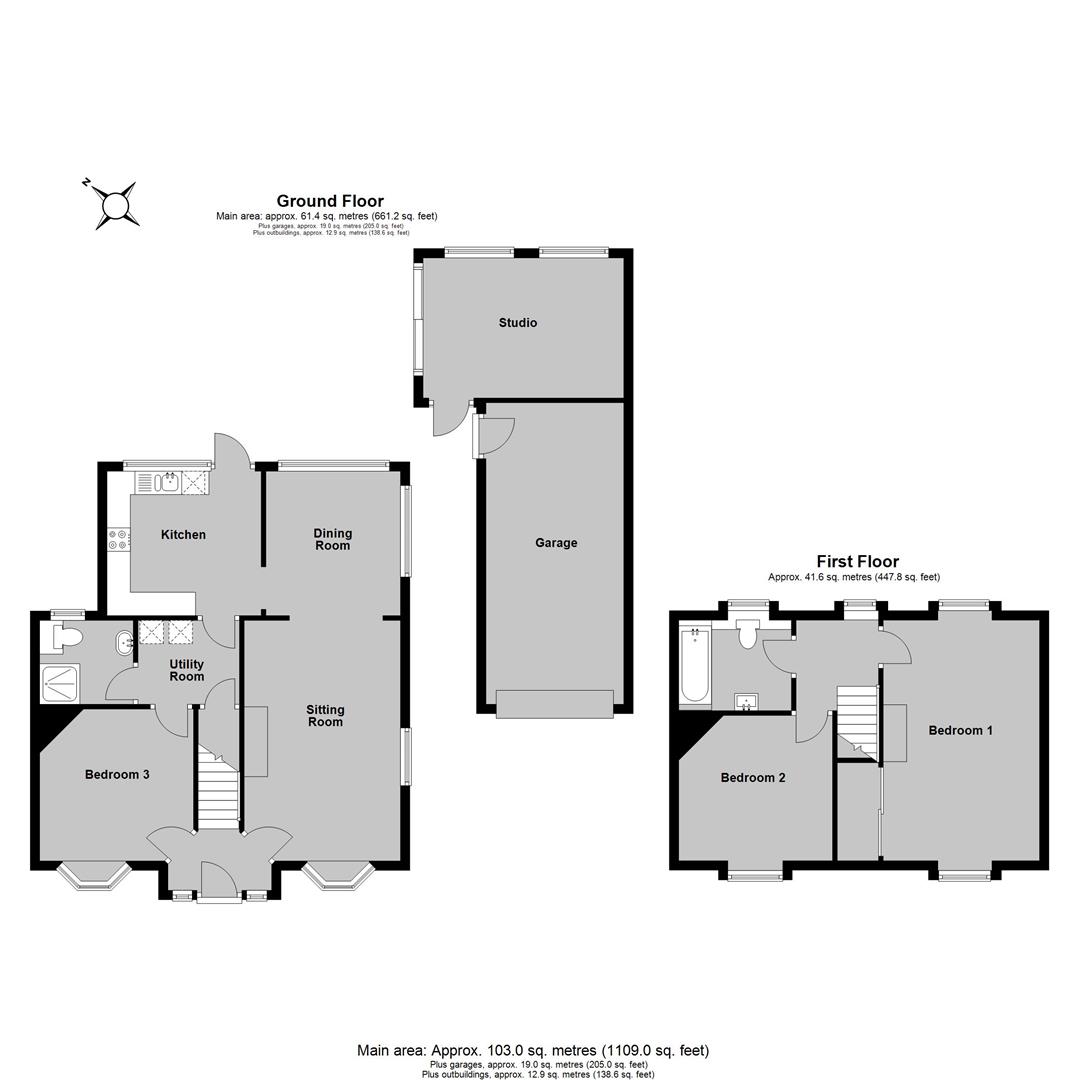 The significantly extended and smartly presented accommodation is arranged on the ground floor to provide an entrance hall, a generous sitting room with a wood-burning stove opening to a dining room, a kitchen overlooking the garden, a double bedroom, a utility room, and a well-appointed shower room. The first floor comprises two double bedrooms and a stylish bathroom.