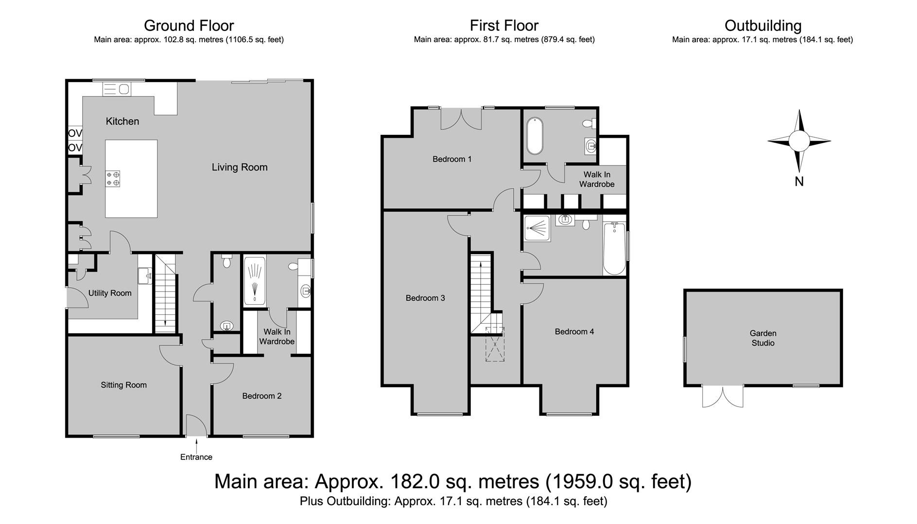 The property has been comprehensively extended and remodelled and now provides bright and spacious accommodation presented in smart contemporary style throughout. The ground floor is arranged to provide an entrance hall, a sitting room, an impressive open-plan living room with kitchen, a utility room, and a double bedroom with a walk-in wardrobe and en-suite shower room.