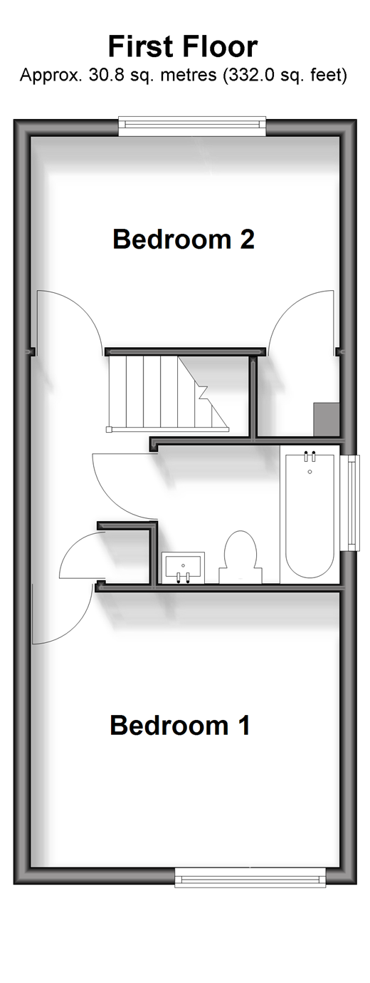 This end of terraced property has been refurbished to an immaculate standard by the current owners. Downstairs provides an entrance porch that leads to the light and airy living room, the modern kitchen is fitted and leads to the private rear garden. There are two bedrooms, both double in size and luxury family bathroom. Room sizes:Entrance PorchLounge: 19'3 x 11'10 (5.87m x 3.61m)Kitchen: 11'11 x 7'11 (3.63m x 2.41m)LandingBedroom 1: 11'11 x 10'5 (3.63m x 3.18m)Bedroom 2: 11'11 x 8'0 (3.63m x 2.44m)BathroomGarage en-blocFront and Rear Gardens